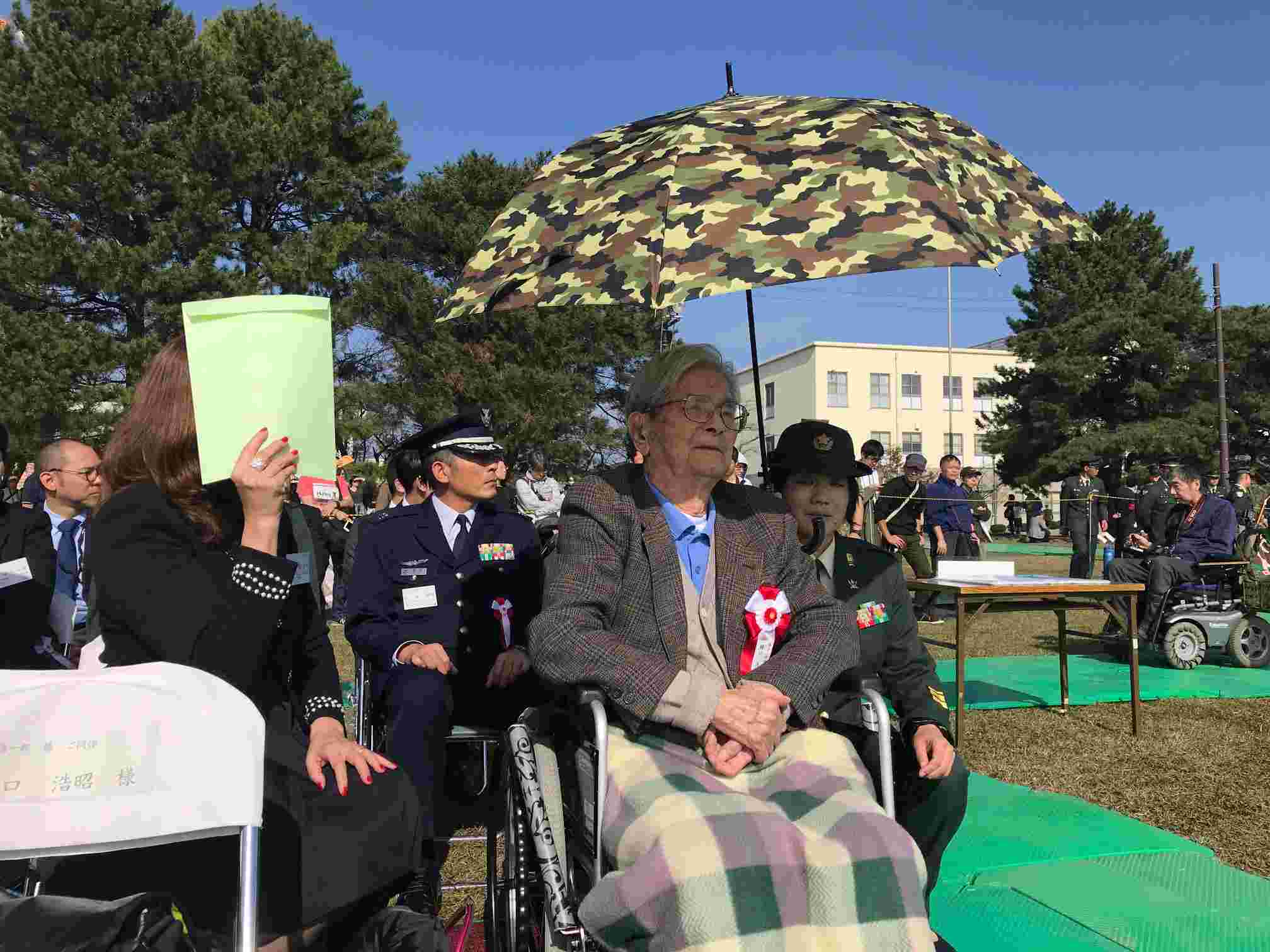 おつきの自衛官が2人ついてくれて、車いすの父をトイレに連れて行くときも、何をするときも、